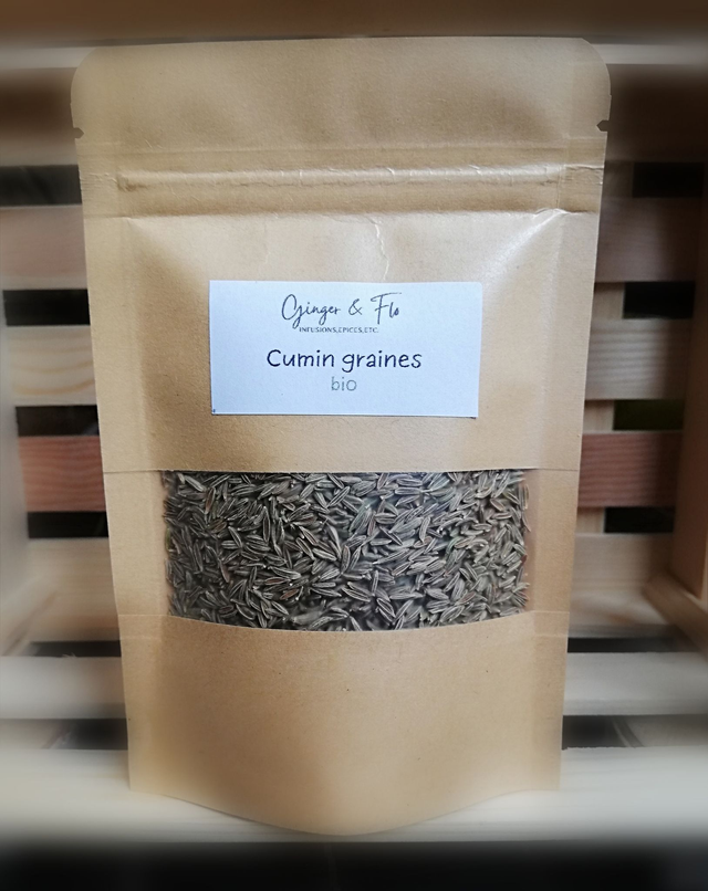 Le cumin est connu pour sa saveur piquante et astringente. Il réduit les douleurs et distensions abdominales et facilite la digestion des plats lourds. Il favorise la lactation.